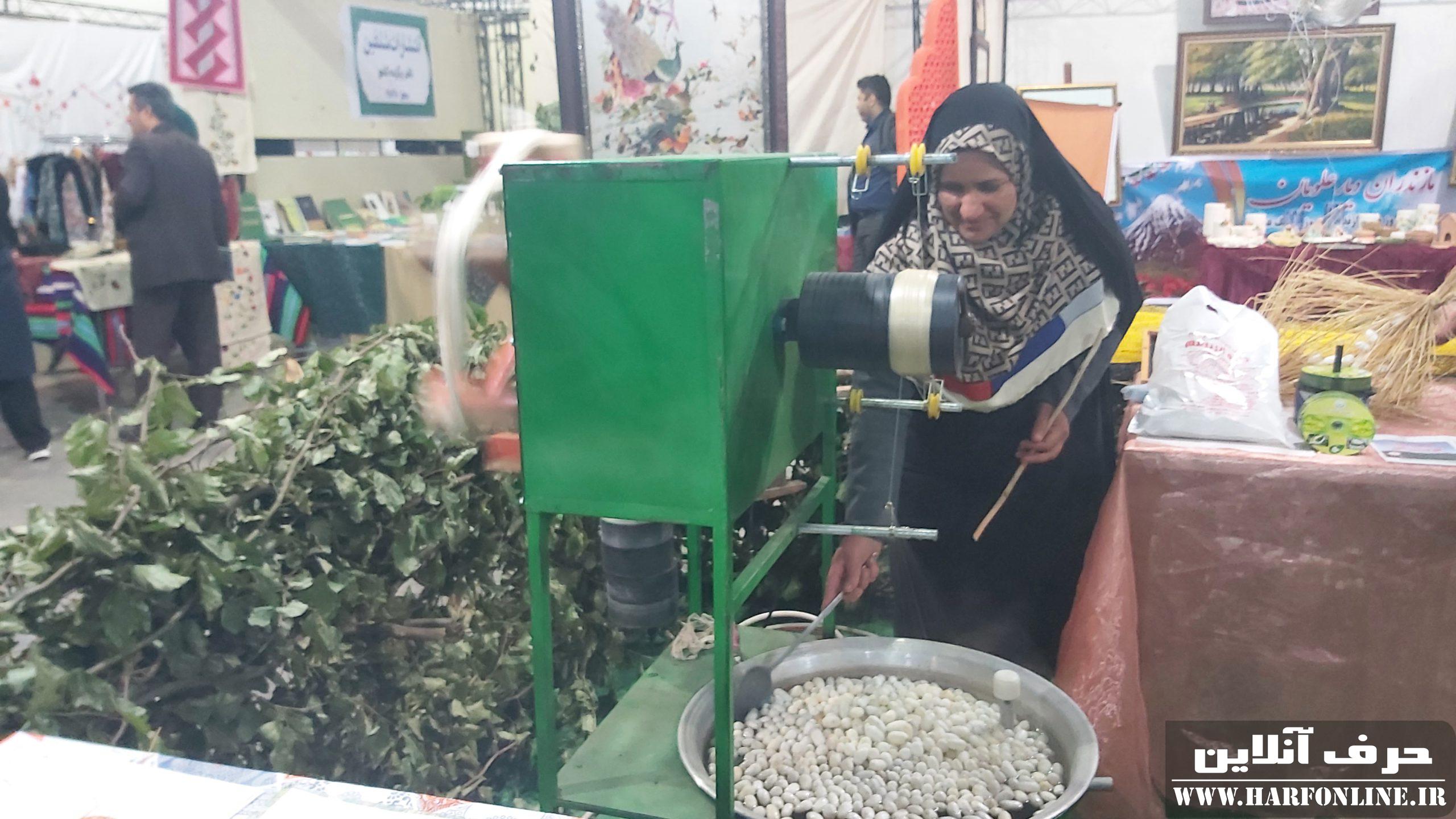 کبری محمدی از روستای لمارون بخش بابلکنار مازندران تولیدکننده نوغان و نخ ابریشم که در نمایشگاه روز مازندران غرفه دارد، در گفت و گو با حرف آنلاین، می‌گوید: از حدود ۲۵ سال گذشته تاکنون مشغول به‌کار نوغان‌داری هستم.