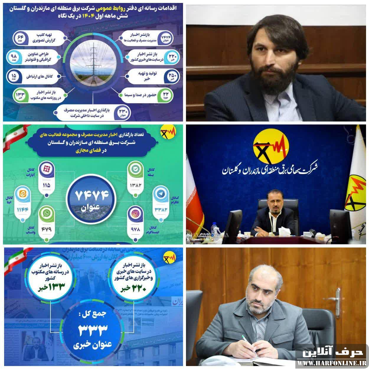 مدیر روابط عمومی شرکت برق منطقه ای مازندران و گلستان در پایان تأکید کرد:«امروز روابط عمومی شرکت برق منطقهای مازندران و گلستان با بهرهگیری از *۱۵ بستر ارتباطی و بیش از ۵۲۰۰ مخاطب فعال*، نه تنها یک واحد اطلاعرسانی، بلکه بازوی ارتباطی، تصمیمساز و عملیاتی شرکت محسوب میشود.»