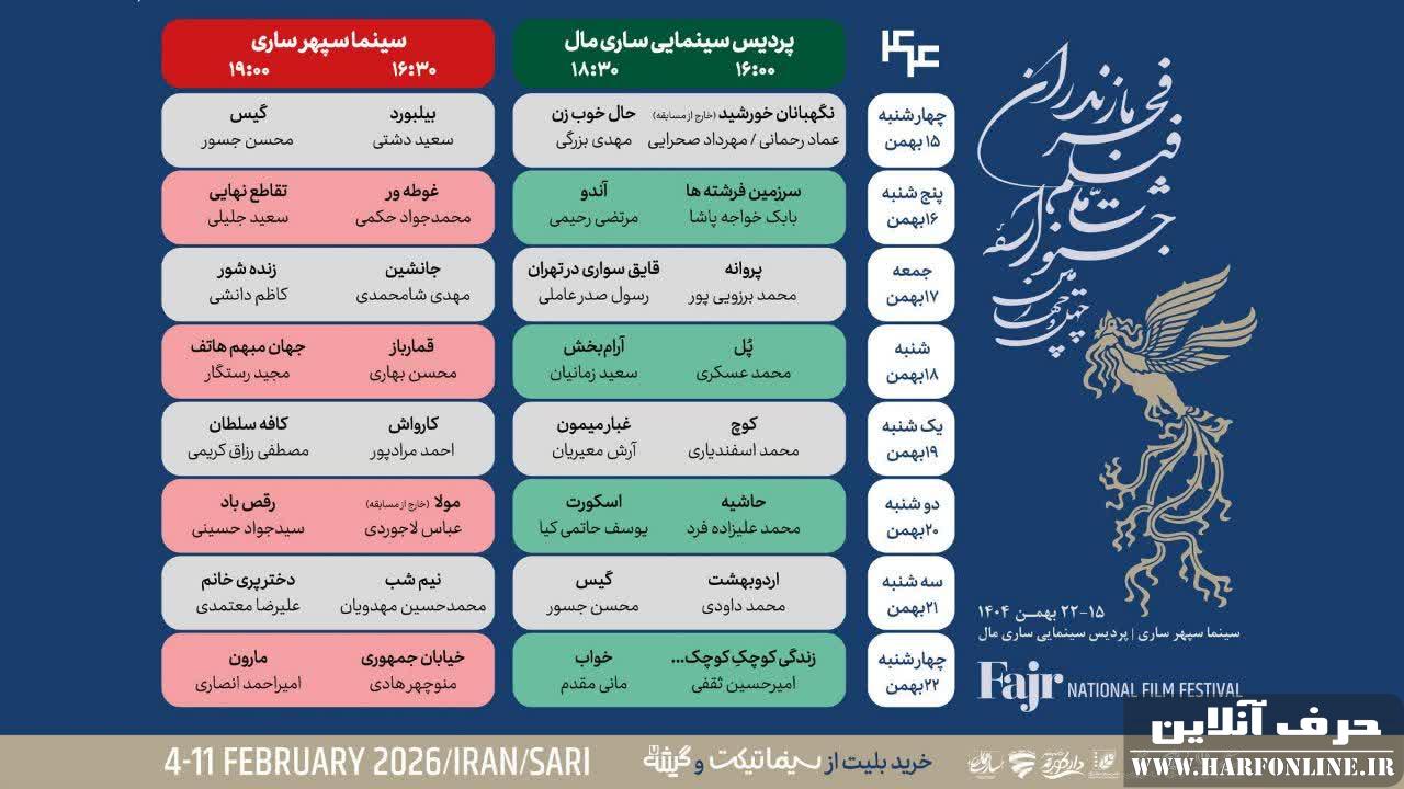 ۳۱ اثر چهلوچهارمین جشنواره فیلم فجر در ساری روی پرده میرود+جدول اکران
