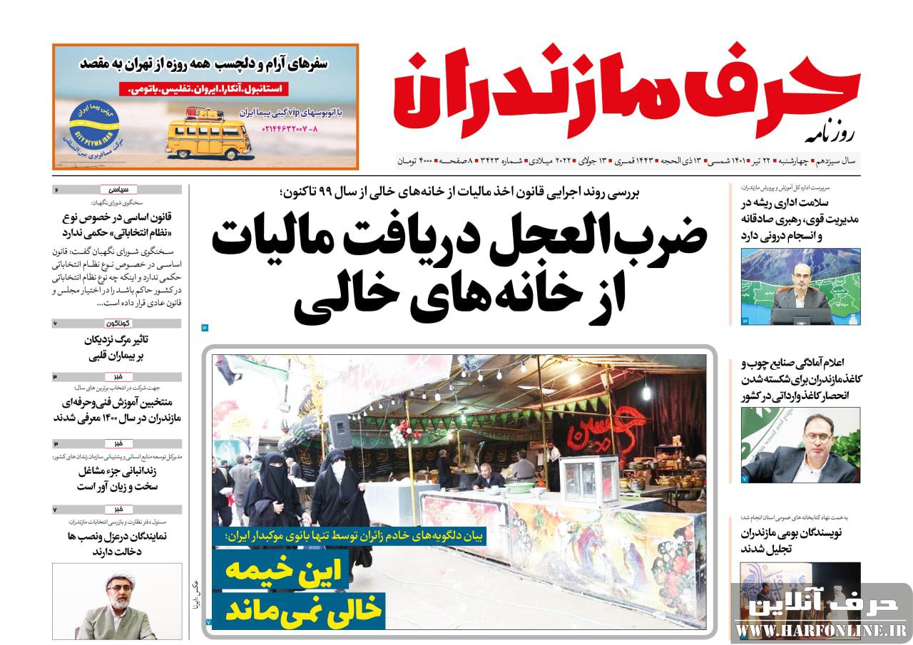 نسخه الکترونیک روزنامه حرف مازندران – چهارشنبه 22تیر-شماره 3423