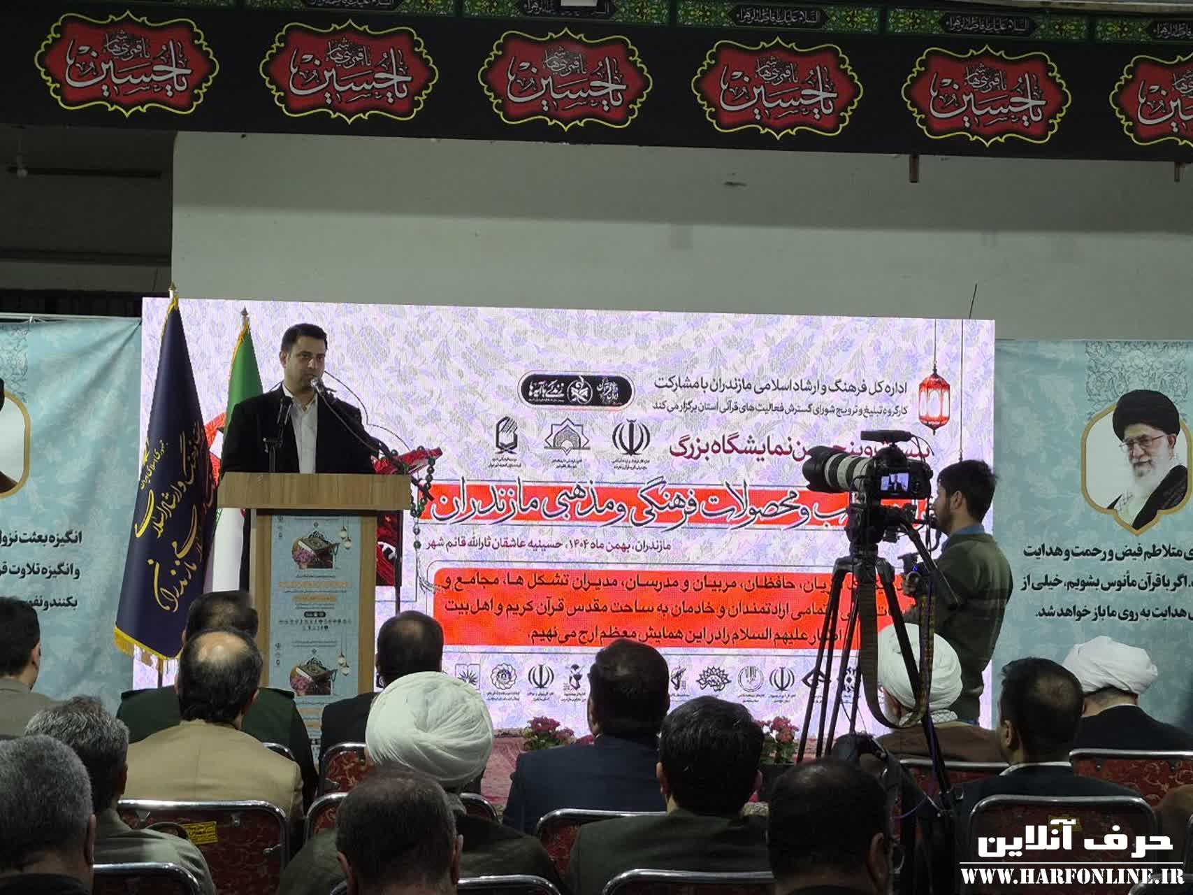 مدیرکل فرهنگ و ارشاد اسلامی مازندران (عصر شنبه) در مراسم افتتاح بیست‌وپنجمین نمایشگاه بزرگ قرآن، کتاب و محصولات فرهنگی و مذهبی مازندران در حسینیه ثارالله قائم‌شهر اظهار کرد: این نمایشگاه بزرگ قرآنی با ۵۵ غرفه متنوع از هوش مصنوعی تا گفتمان‌محوری، فرصتی برای ترویج فرهنگ قرآنی و آشنایی مردم با آموزه‌های قرآن است و تا ابتدای ماه مبارک رمضان ادامه خواهد داشت.