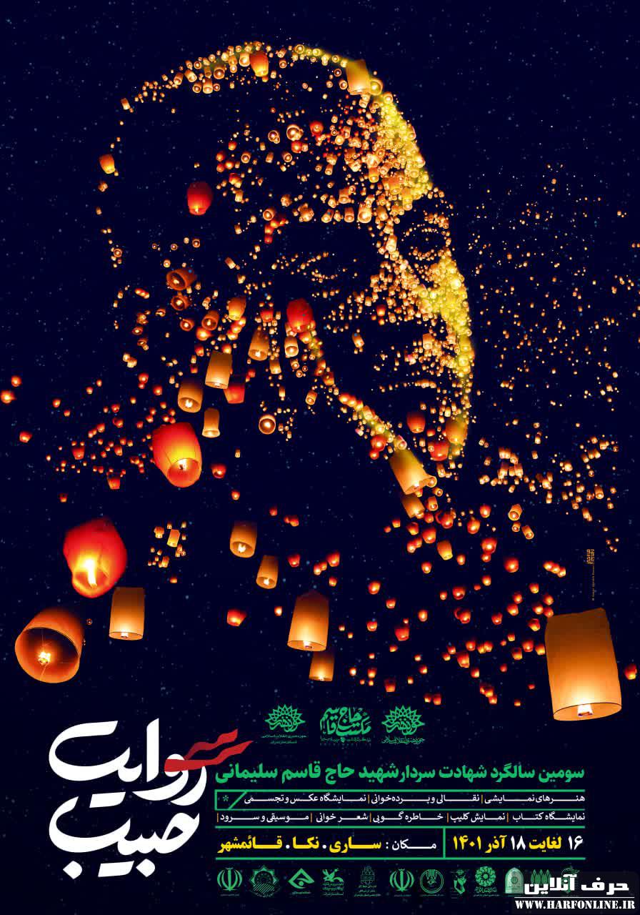 موسوی با بیان اینکه یکی از ویژه برنامه هایی که کاروان روایت حبیب اجرا خواهد کرد، برنامه شب خاطره است، افزود: این رویداد با محوریت روایت خاطرات مرتبط با شهید سلیمانی در کنار برنامههایی چون نقالی و پرده خوانی، اجرای نمایش، شعرخوانی، رونمایی از کتاب و انیمیشن و…. در سالن الغدیر سپاه ساری بعنوان اختتامیه برگزار میشود.