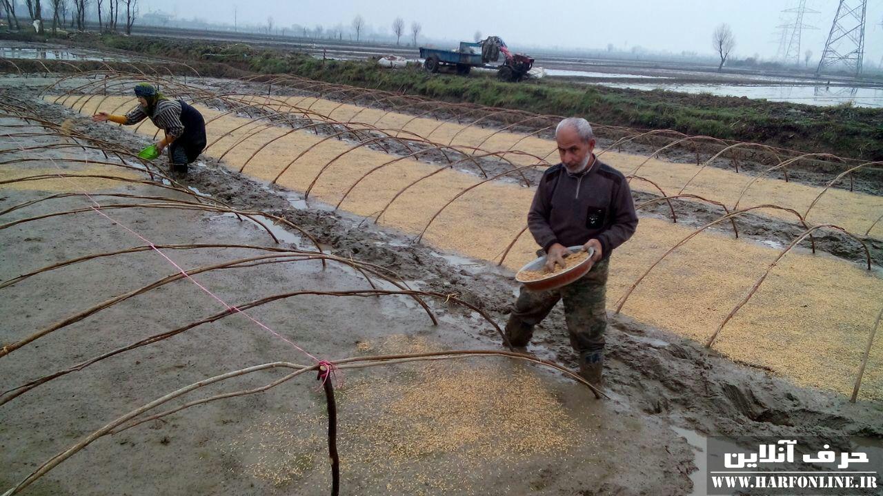 ۱۶ هکتار شالیزار محمودآباد بذرپاشی شد