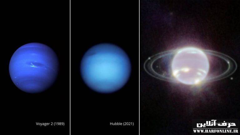 نپتون که سومین سیاره بزرگ منظومه شمسی به حساب میآید، به خاطر حضور گاز متان معمولا به رنگ آبی روشن دیده میشود. هرچند که جیمز وب دنیا را از طریق نور مادون قرمز میبیند و به همین خاطر دوربین مادون قرمز نزدیک این تلسکوپ نپتون را همچون یک سیاره سفید وهمآلود مشاهده کرده است.
